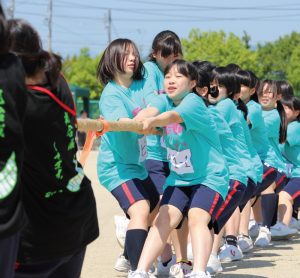 クラス対抗・部活動対抗リレーなどの競争や学年別のオリジナルな種目も取り入れ、熱気であふれています。