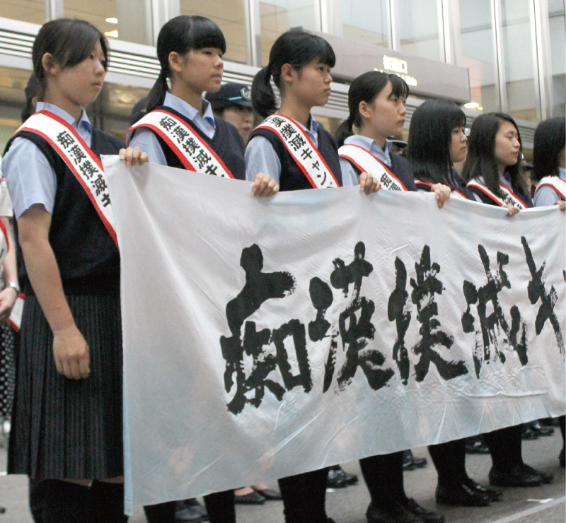 名古屋駅周辺の企業や団体の方と、キャラバン隊として、啓発グッズを配布し、道行く方々に呼びかけます。