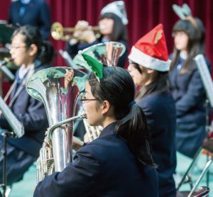 吹奏楽部、コーラス部がクリスマスイブにふさわしい演奏、合唱を毎年行っています。