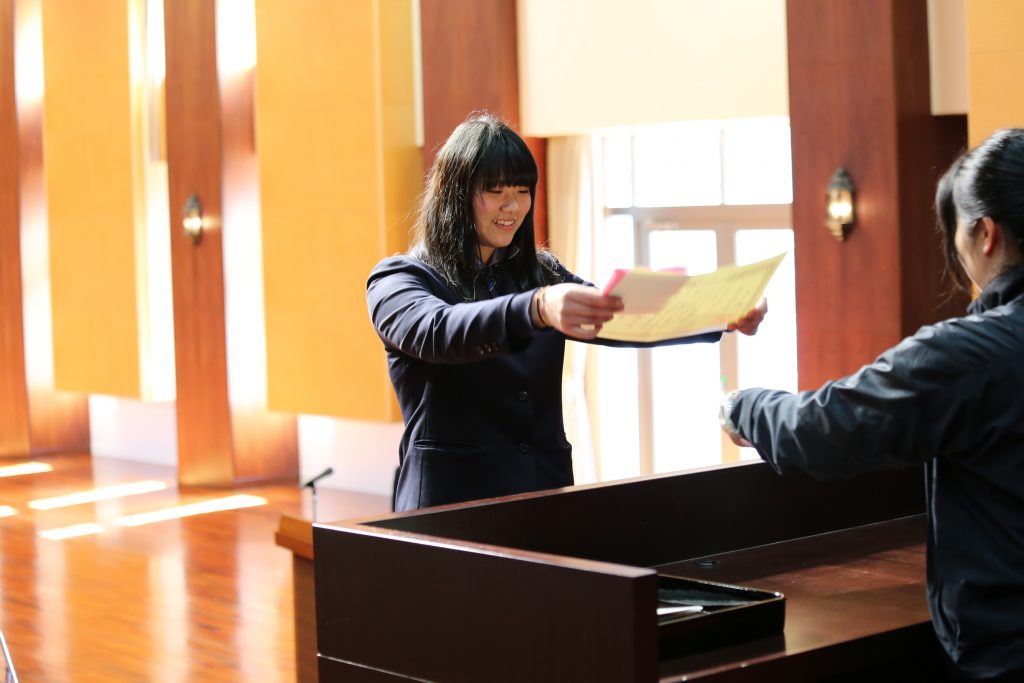 卒部式 バレーボール部 平成30年2月11日(日)に、バレーボール部の卒部式を本校の講堂にて行いました。 3年間バレーボールに向き合い取り組んだ3年生5人には成長の証として、卒部証書と記念品が贈られました。
